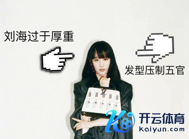 刘海其实是修饰脸型的好东西,发际线高的女东说念主能靠皆刘海粉饰一下,额头不裕如的女东说念主也能应用刘海的弧度在视觉上进行修饰。不外,皆刘海不合适额头短的女东说念主,况兼刘海如果太厚了,会让东说念主嗅觉很压抑。就像刘亦菲弄的皆刘海造型,刘海长度在颧骨上头,不但没把颧骨修饰好,还让颧骨显得更杰出了,这样一来,脸型的通顺度就大打扣头。那厚厚的刘海还把刘亦菲的五官给压住了,倒是让她那种仙女般的疏离感没那么强了,反倒多了些村炮。