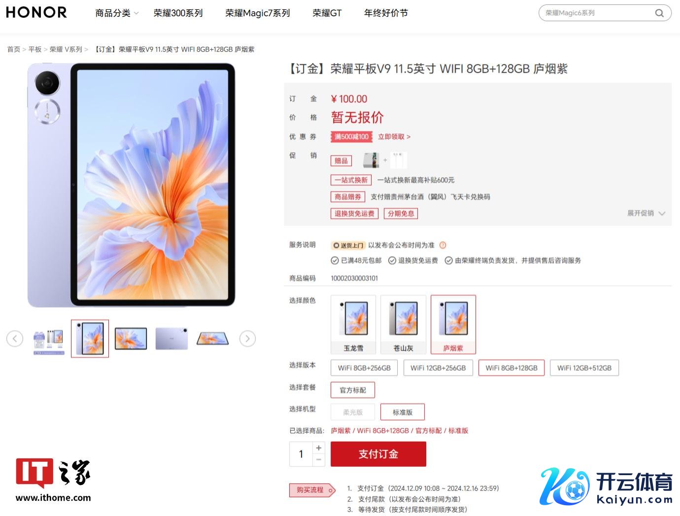 IT之家 12 月 9 日音书kaiyun平台登录入口,荣耀平板 V9 将于 12 月 16 日 19:30 发布,当今新平板已上架荣耀官网开启预约,系列新机领有玉龙雪、苍山灰、庐烟紫 3 种配色,将提供 4 种存储规格、2 种屏幕时势(柔光版、要领版)。