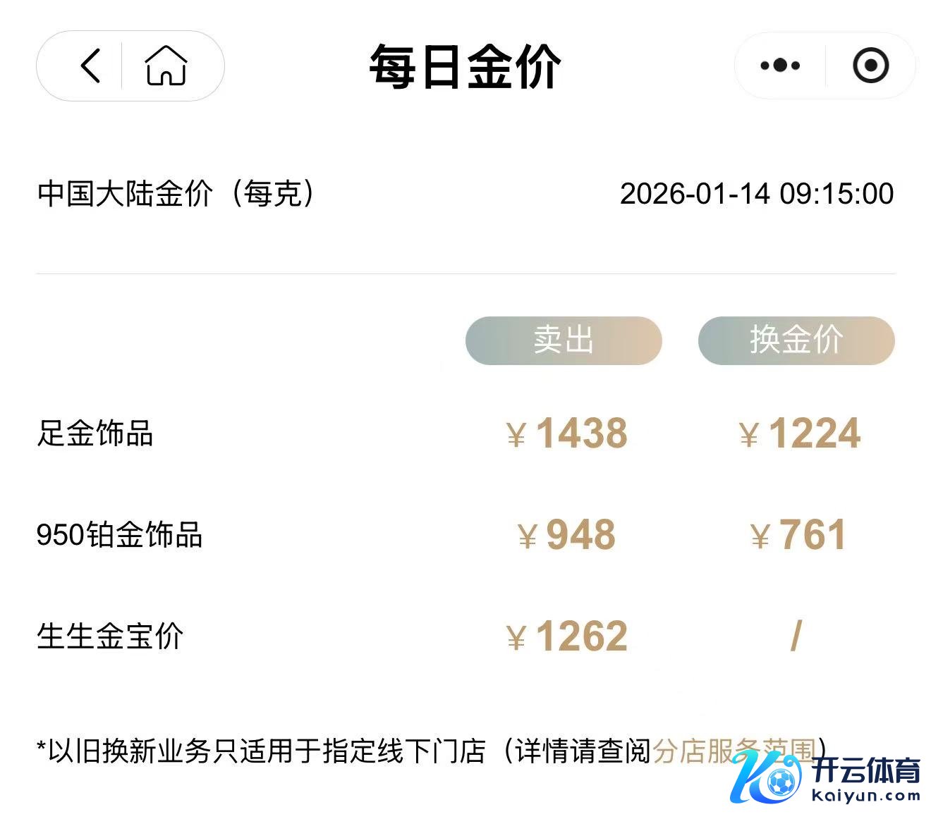 金饰克价涨至1438元金饰克价涨至1438元
