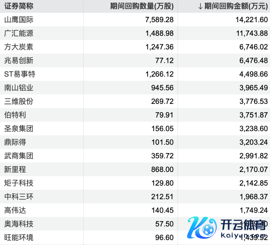 4家上市公司股票获回购开云体育,山鹰海外回购金额最高4家上市公司股票获回购,山鹰海外回购金额最高
