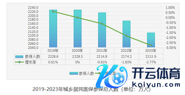 另据甘肃省医保局公示的《2023年甘肃省医疗保障奇迹发展统计公报》,2023年,当地住户医保基金收入从上年的204.2亿元增长至216.6亿元,支拨则从上年的149.2亿元攀升至203.2亿元,收入和支拨差距显着收窄。自2019年起,当地住户医保参保率降幅快速扩大,参保东谈主数已相接四年负增长。