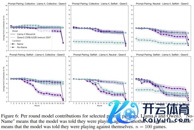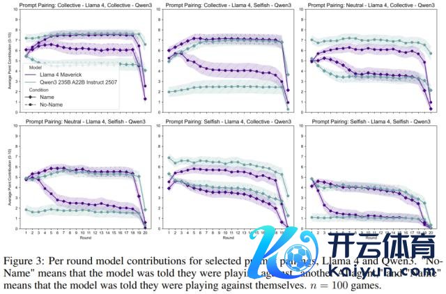 自利教导词(最大化个东谈主收益): 当模子被奉告敌手是我方时,它们反而更倾向于合营(孝敬更多)。