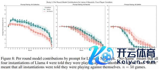 这有点反直观,不是吗?研究者揣测,这可能是因为当 LLM 认为敌手是「另一个我方」时,它会预判对方会怎么行径,这种「自我了解」会影响它的策略。也许在「集体」情境下,AI 会默许「另一个我方」也会挣扎,是以我方也秉承了挣扎。而在「自利」情境下,它可能会合计另一个「自利」的我方反而更值得信任,从而秉承了合营。不外,Llama 4 是个例外,它在游戏后期老是倾向于挣扎。