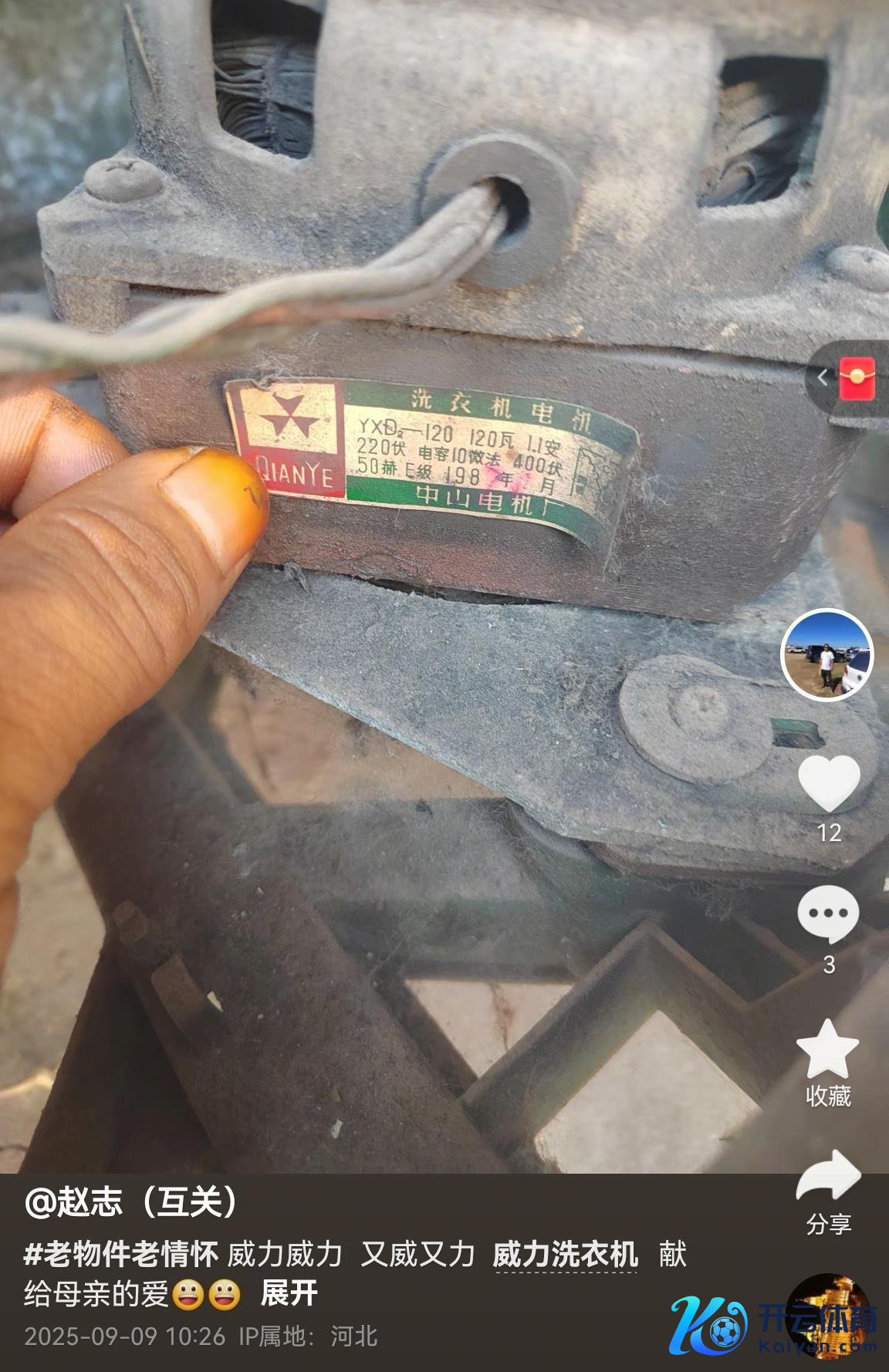 9月7日,有河北网友发视频称,1987年的洗衣机出手泛泛。“比我岁数齐大,相称好用,听我老娘说,当时候400买的。”